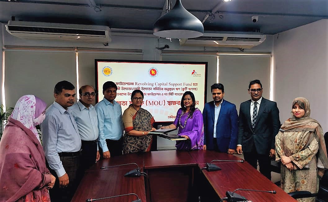 জয়িতা ফাউন্ডেশনের Revolving Capital Support Fund হতে ব্যক্তি নারী উদ্যোক্তা / নারী উদ্যোক্তা সমিতির অনুকূলে ঋণ (স্কুটি ঋণসহ) বিতরণের উদ্দেশ্যে জয়িতা ফাউন্ডেশন ও দ্যা সিটি ব্যাংকের মধ্যে সমঝোতা স্মারক (MOU) স্বাক্ষর অনুষ্ঠান।